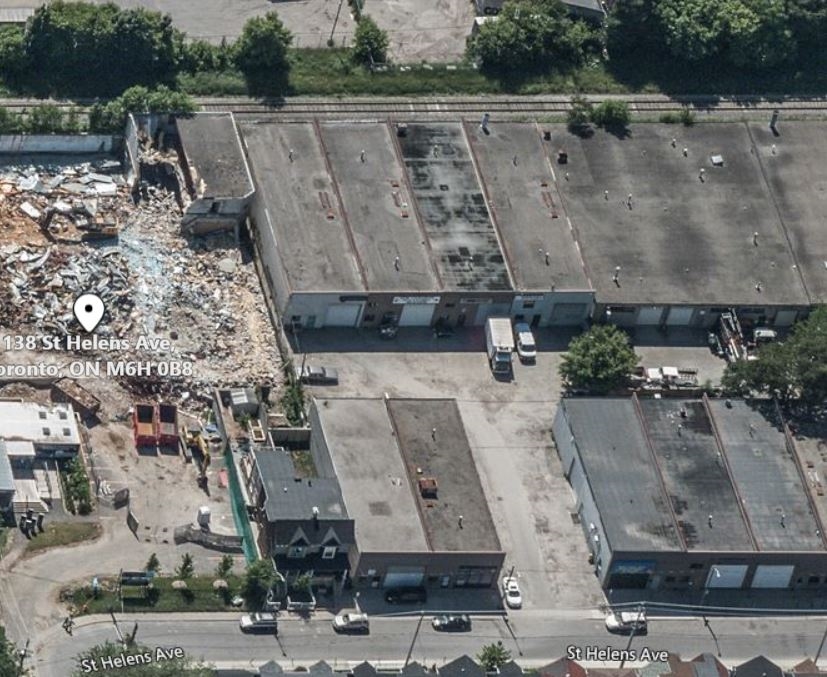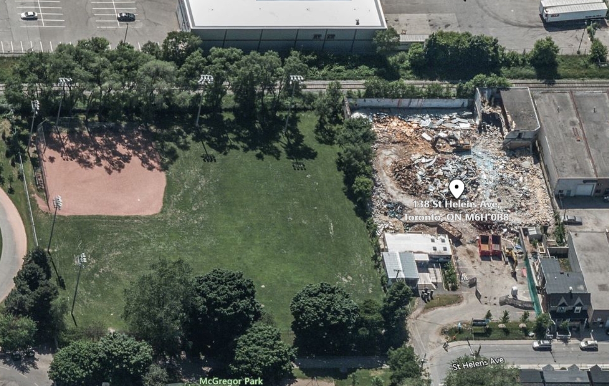 Another one that's a case of not being able to trust the renderings is a project at 138 St. Helens Ave ("Enigma on the Park" in the College & Lansdowne area. Here is an aerial view before construction began. Notice the nice softball field, which is my favourite one in the city as you're nested in among the trees and it has a real outfield fence.