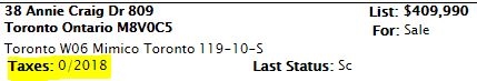 Here's a current listing for a Toronto condo under an assignment sale (pre-con purchaser is selling before the building registers). The notes to this one include "Taxes have not been assessed yet," which is a typical wording.