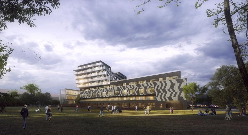 Notice the renderings conveniently leave out the unsightly overhead streetcar wires? The plastic yellow wrap coming down from the streetlamp is missing too. Renderings are fantasy photos, so prepare yourself for some disappointment as the building will end up not looking quite as nice as this ideal view.