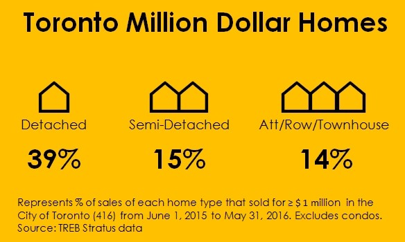 Maybe the writer has a detached house bias. Those are obviously much more likely to sell for more money. But even with the most expensive type of house, 50% of the communities/hoods across the 416 have an average home price of $1M or more (note averages are usually higher than the medians in the 416 market). But you shouldn't overlook the 27% of the 416 houses sold in Q2 2016 were semi-detached or attached/row/townhouses (more towards downtown and its smaller lots than out in the "inner suburbs"). If you're willing to put up with some party wall action, 77% of the city's neighbourhoods had an average priced semi-detached house under $1M (and half under $750K), and 80% of hoods had attached/row/townhouses that averaged less than $1M. The article does throw in that Dufferin Grove is "not the only such gem in the city," but these lower price points are way more common than the article lets on. Having 44 neighbourhoods where semis average less than $750,000 is hardly makes Dufferin Grove "one of the last affordable neighbourhoods in the city."