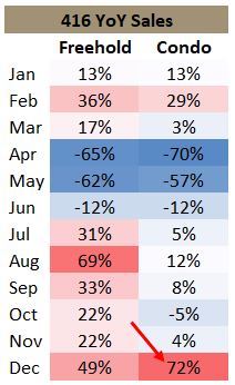 In the blog last month, it was a continuation of the narrative for several months whereby freeholds were going strong and condos were kind of hurting, especially in the downtown core. And then December happened.
