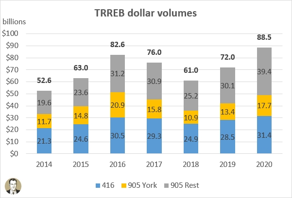 The other thing I want to point out is the dollar volumes for the year. You'll note that the value of TRREB residential transactions reached an all-time high in 2020 of $88.461 billion. That bests the old record of $82.578 billion in 2016, a year with nearly 18K more transactions.