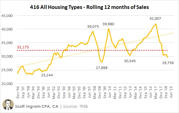 I wrote in my December report that "I'm not optimistic about volumes in 2019." The 29,870 transactions in the 416 were the lowest total since July 2009. And now that number has edged slightly lower.