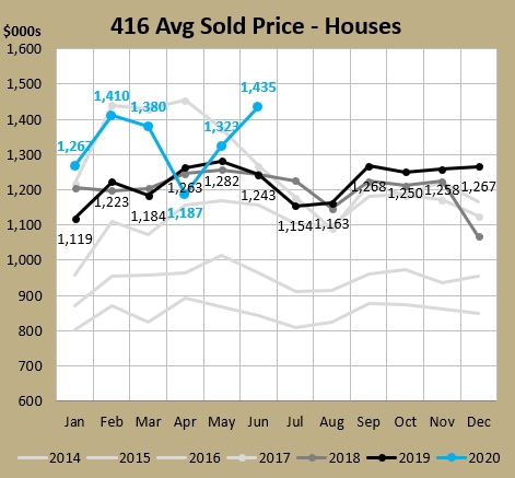 That $1,435K we just hit for average detached home prices in the 416 was the highest June ever and third highest month ever, behind April 2017 ($1,455K) and February 2017 ($1,439K).